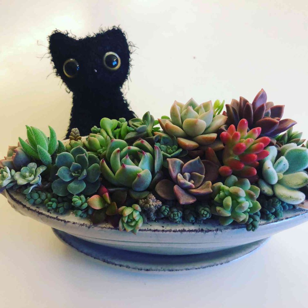 今日は、お休みだったので、舟型の器に寄せ植えをしました😊