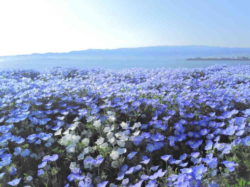 海のブルーとネモフィラブルーが溶け合ってる…💙✨💙✨