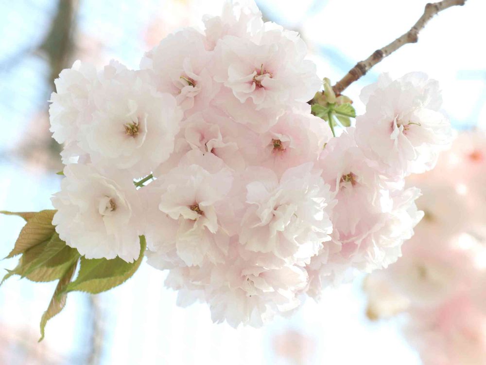 こんな淡いピンクの八重桜…