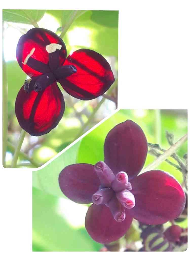 アケビの花 初めて見たんです✨実からは想像できない花でした😆