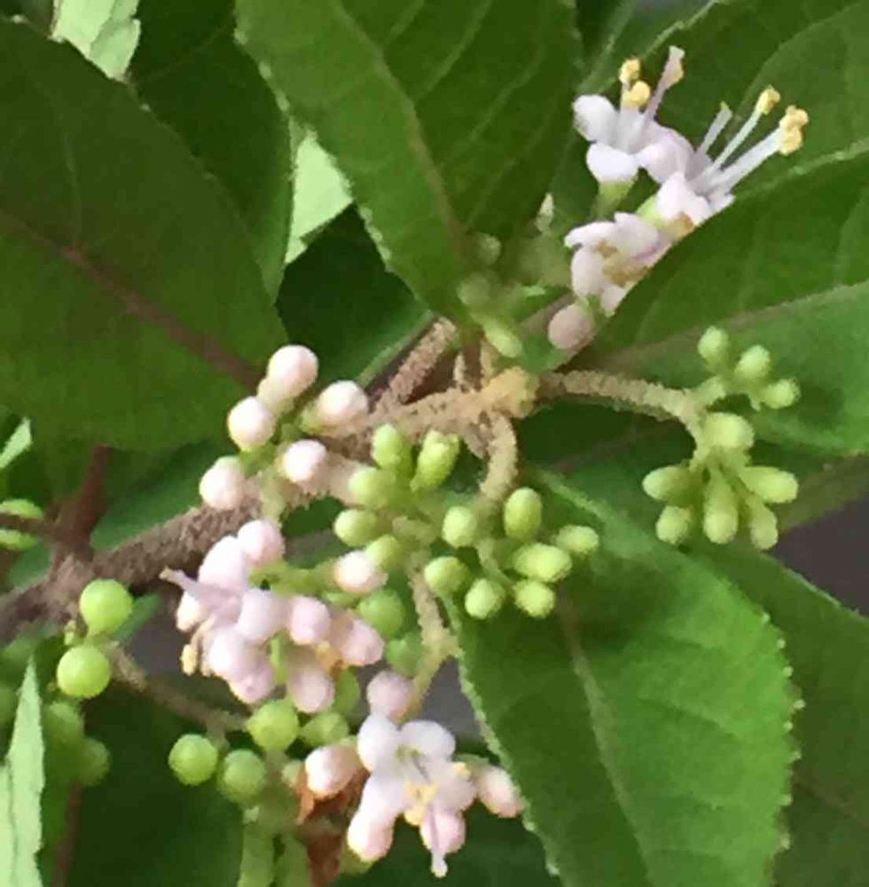 さっき、よそのお家の紫式部の花を見つけましたよ。いつも美がなると注目してました。お花もかわゆい事を教えてくださりありがとうございました。