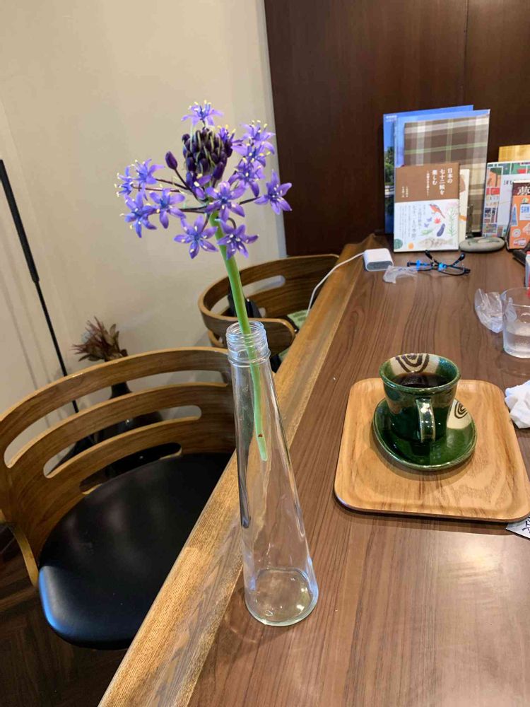一輪挿しにオオツルボ 別名 シラーベルビアナ。