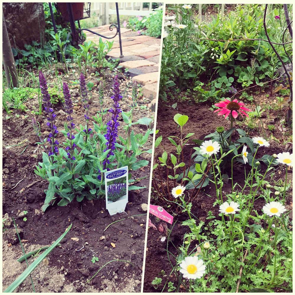 昨日ホムセンで仕入れたサルビアとエキナセア。