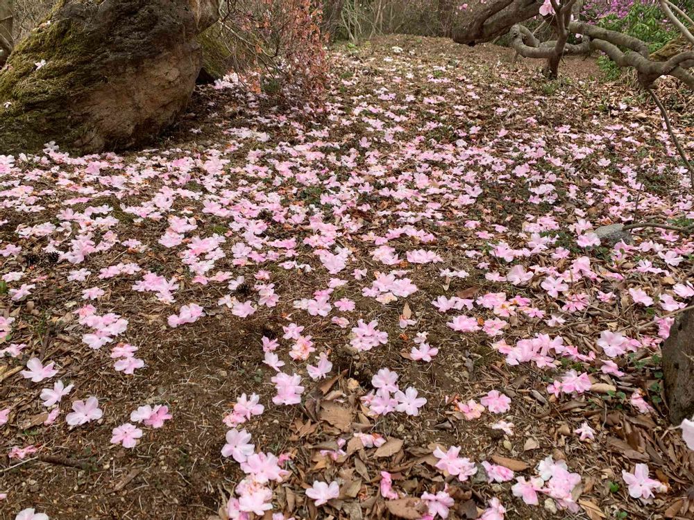 桜ではなくて、アカヤシオの落花です。
