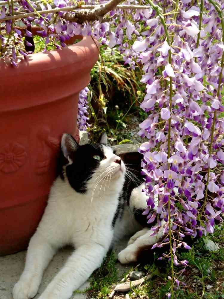 藤の花とニャンコのコラボ、可愛い💕