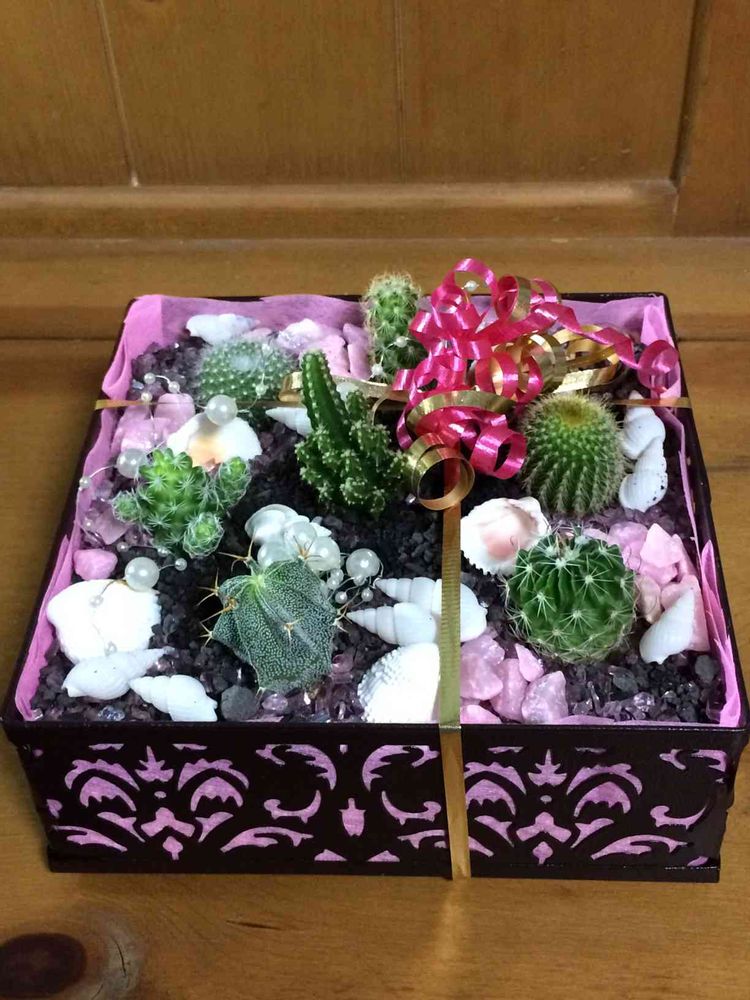 15種類くらいから好きなサボテンちゃん選んで教えていただきながらプレゼントBOX風に完成〜(≧∇≦)楽しかった♪