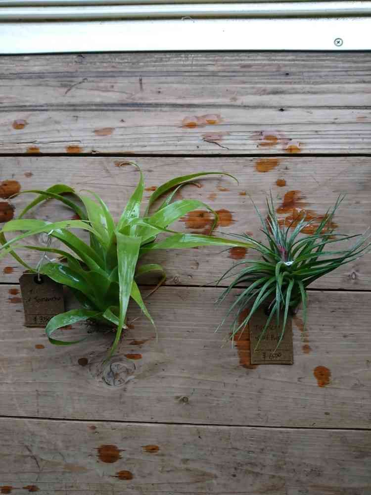 再び再びこんにちは🙇今日トロピカルビレッジさんで買った品物です!左側はチランジアサマンサ、右側がチランジアストリクタスティッフパープルです👌。