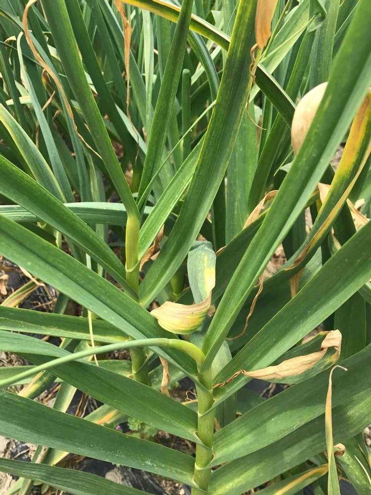 順調な山東ニンニク、とう立ち気配が。来週末にはニンニクの芽を収穫できそうです。