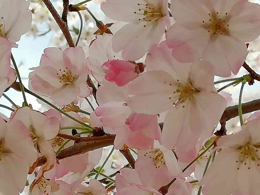ジンダイアケボノは、ソメイヨシノと同じ親のオオシマザクラとエドヒガンの交配種だそうです。