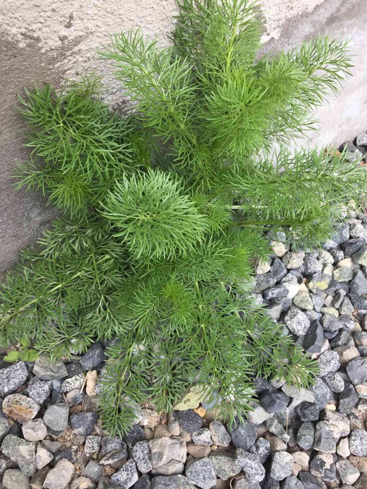 去年の種が落ちて、砂利の中から