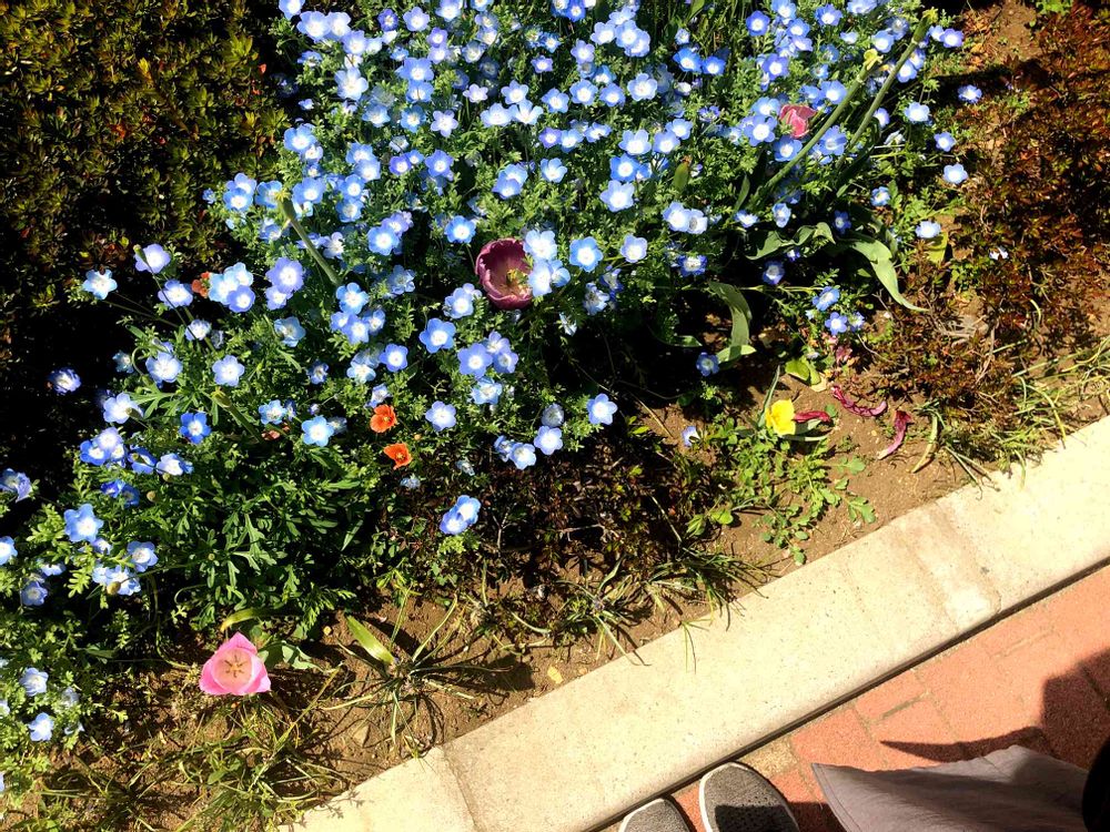 ひたちなかで観るネモフィラよりも、一回りも大きく見えたなぁ、浅草の花壇に植えられていた、ネモフィラさまがた!✨