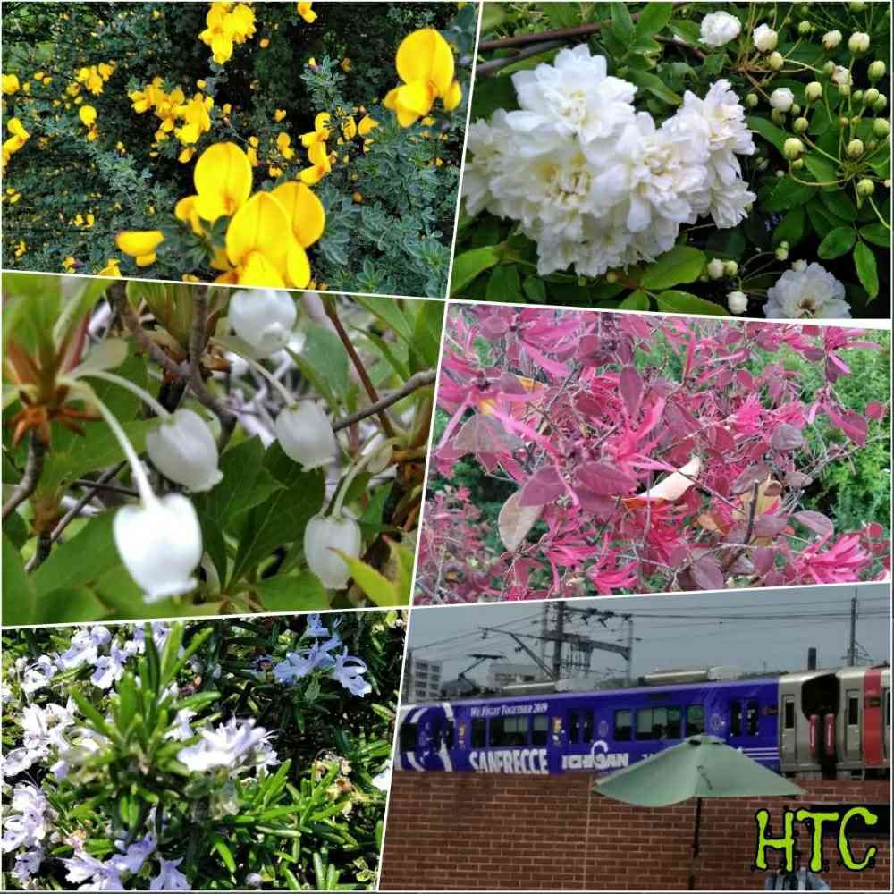先日の散歩、お花を写しているその時、横のJRの線路にサンフレッチェ仕様の電車が〜、