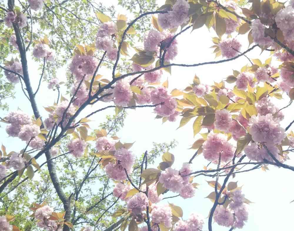 八重桜はこのピンクと、また別のところに1本クリーム色にピンクがかったさくらがありました(*ˊᵕˋ*)