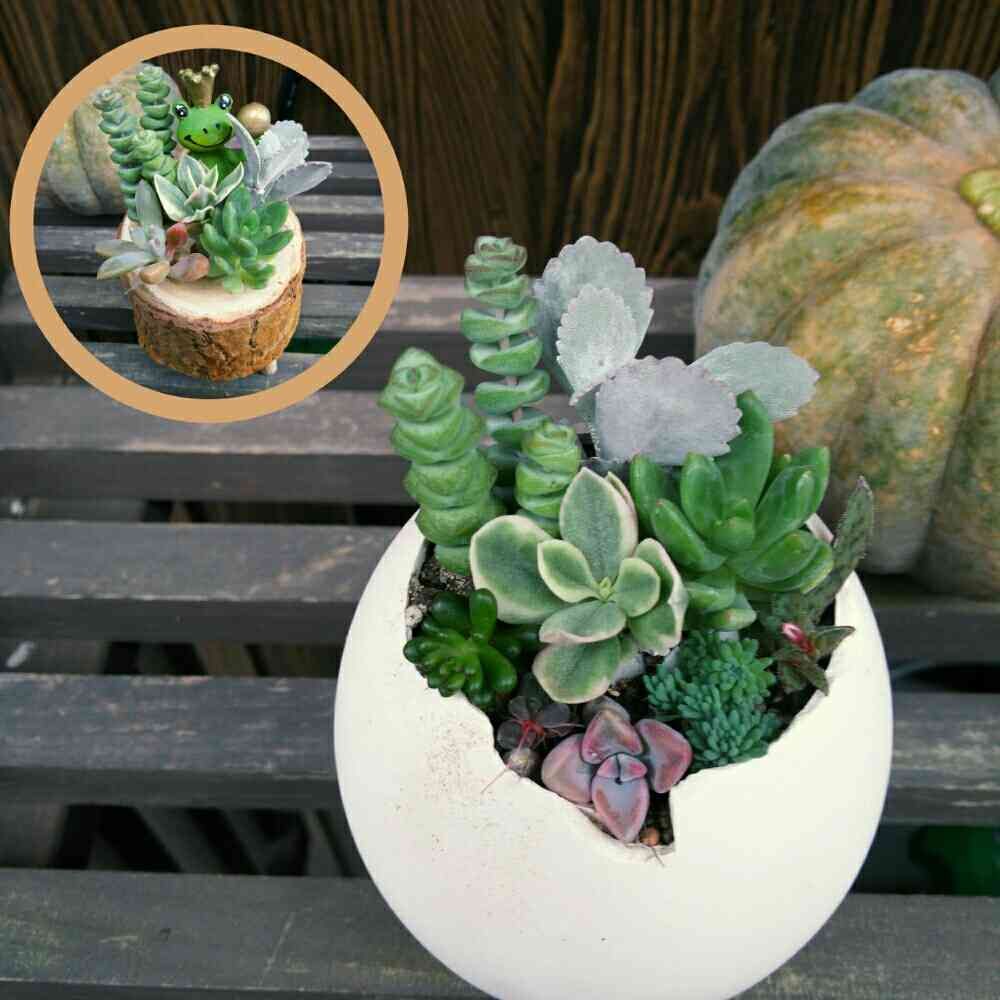 挿し木苗を買うのより安かったので助けるつもりで買って家のも少し足して、早速卵型の鉢に植えました(^^)