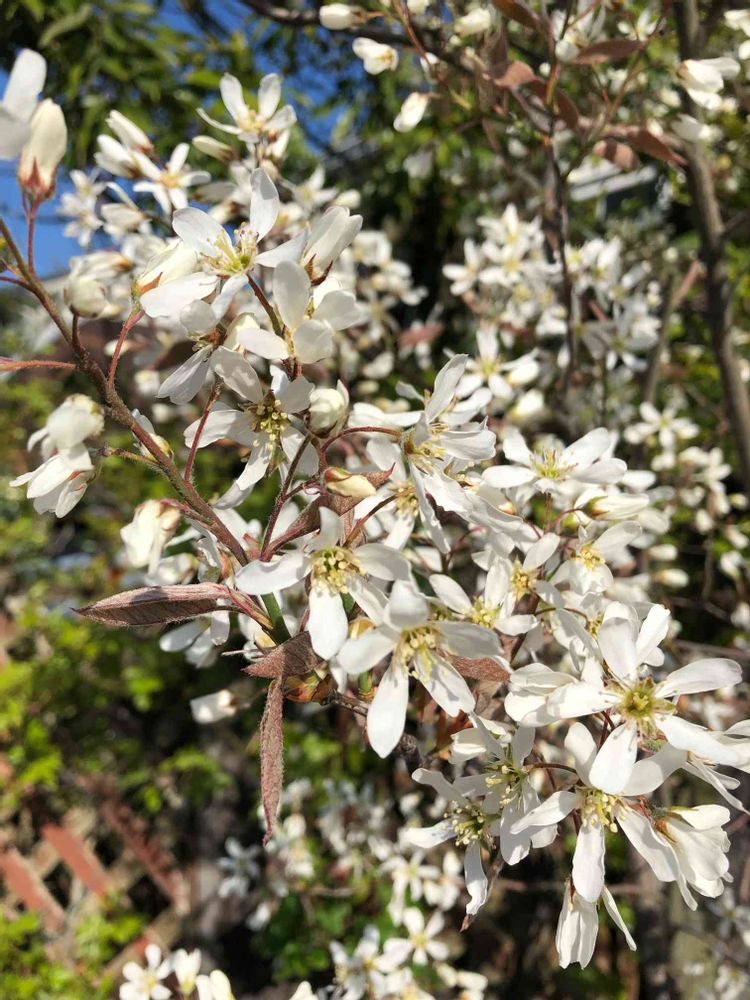 庭のジューンベリーです。桜のように花が咲き、パッと散ります。庭か、華やかになります。