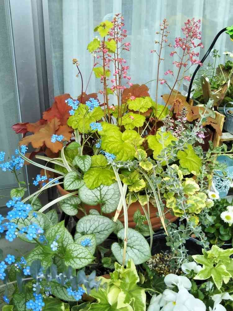 ブルーの小花はブルンネラジャックフロストの花です。去年購入し、去年は咲いたのは1本(?)だけでしたが、2年目の今年は花が増えて嬉しいです。