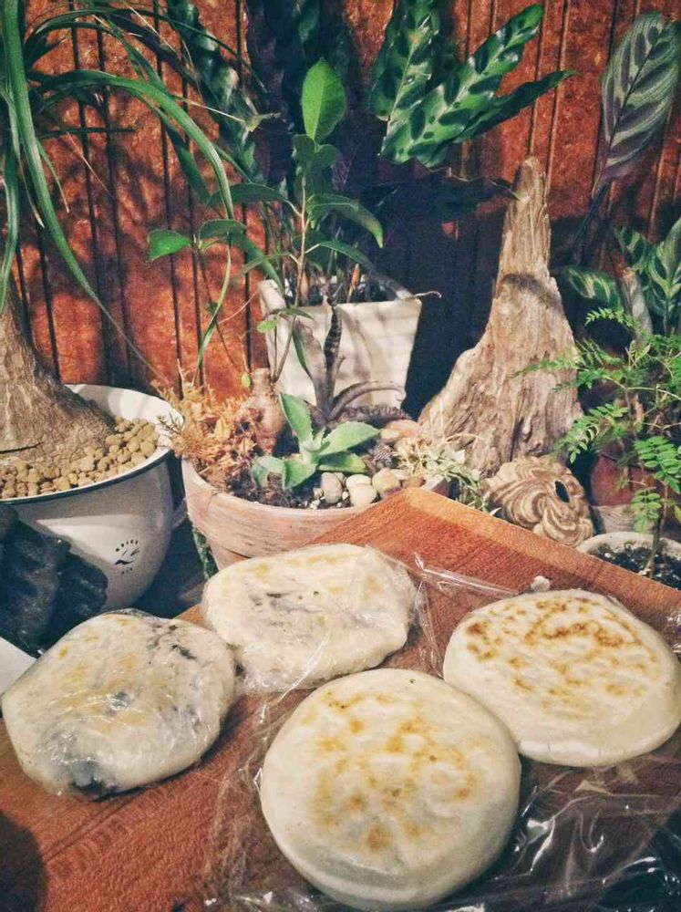 あんこ中に入れて丸めてごま油表面に塗ってフッ素加工のフライパンで蓋して両面焼いたら出来上がり〜〜d(>∇<;)