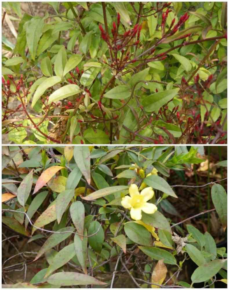 ↓カロライナジャスミン:漸くの1輪が開花。picで見ると葉が傷んでるなぁ~。去年の台風で鉢ごと振り回されたからしゃーないか⁉️そう言うことにしとこ🎵