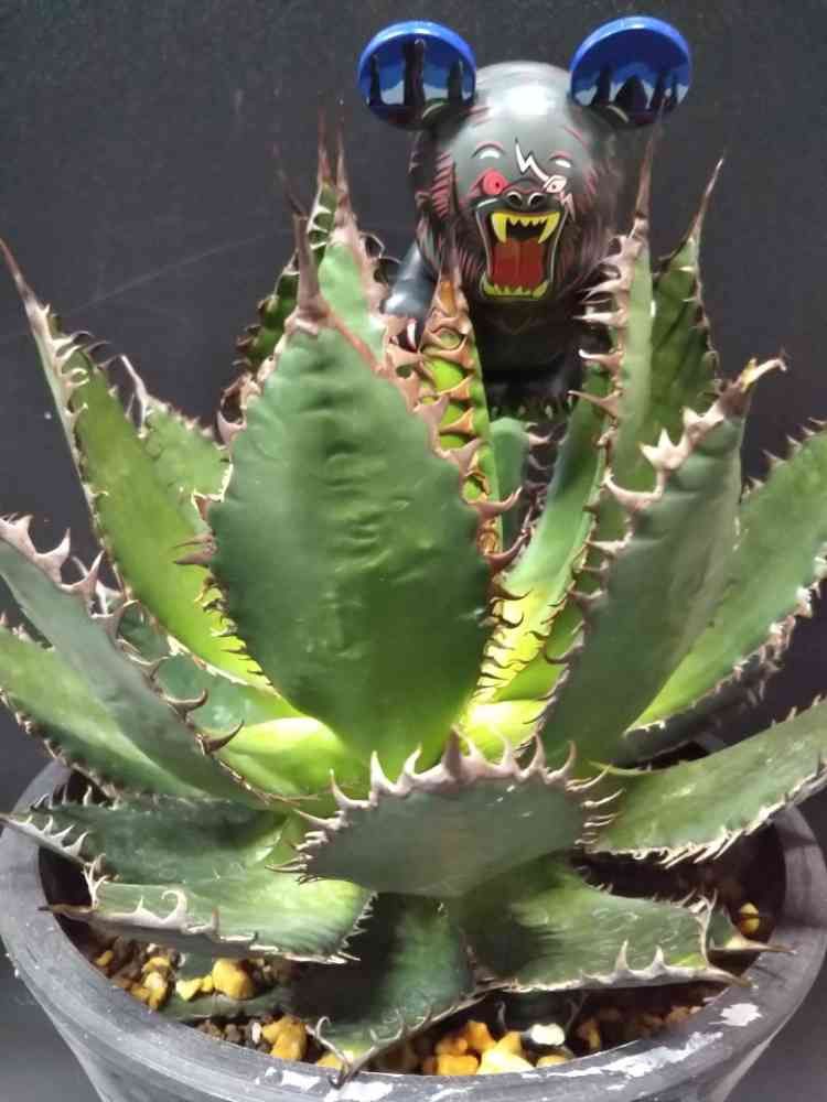 アガベの鋭い棘と鋭い表情のくまちゃん🤗