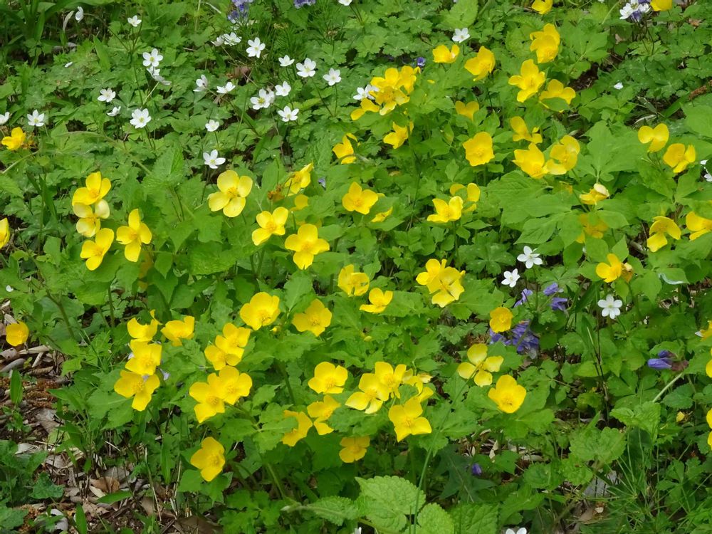 ヤマブキとニリンソウが並ぶと、ニリンソウの小ささがわかりますね💖