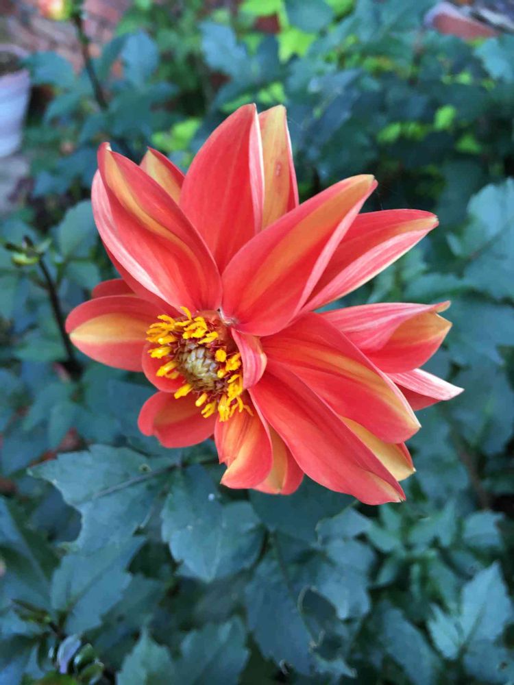 ダリアはお花も素敵だけど、葉っぱがかっこいいと思うのです。これも青銅っぽい葉が、花を引き立ててる✨