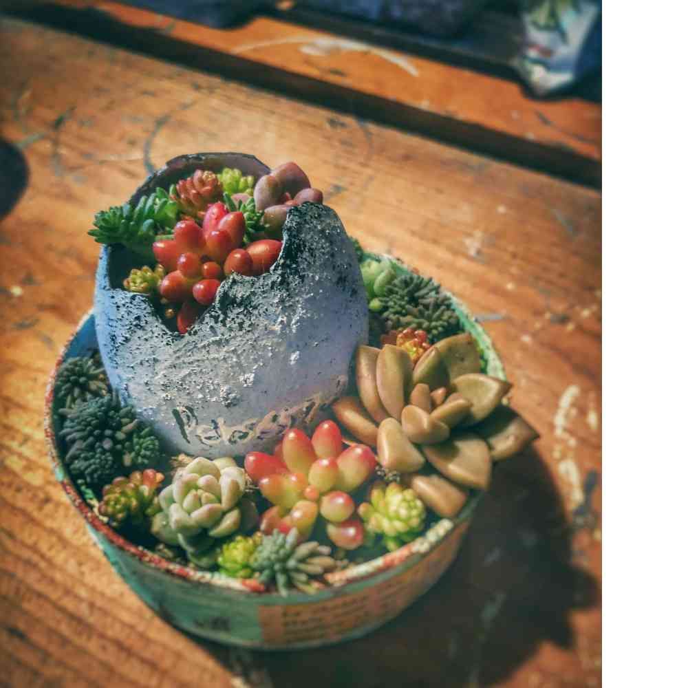 またまたセダムを寄せました!リメ缶にエッグベースを合わせて小さな寄せ植えです。これからはモリモリ伸びて成長するのでバランスをみながら整理して、新たな寄せ植えを作っていくのが楽しみな時期です。ちびな子が成長する姿に癒されます。ぜひご体験を!