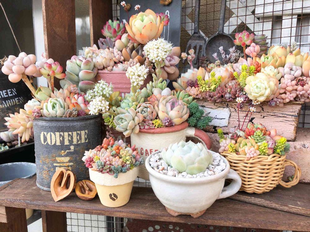 お気に入りのカフェモチーフになっている鉢を集めました。