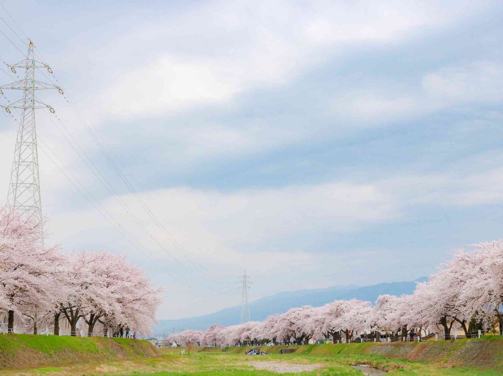 桜並木が数キロに渡って続いています🌸