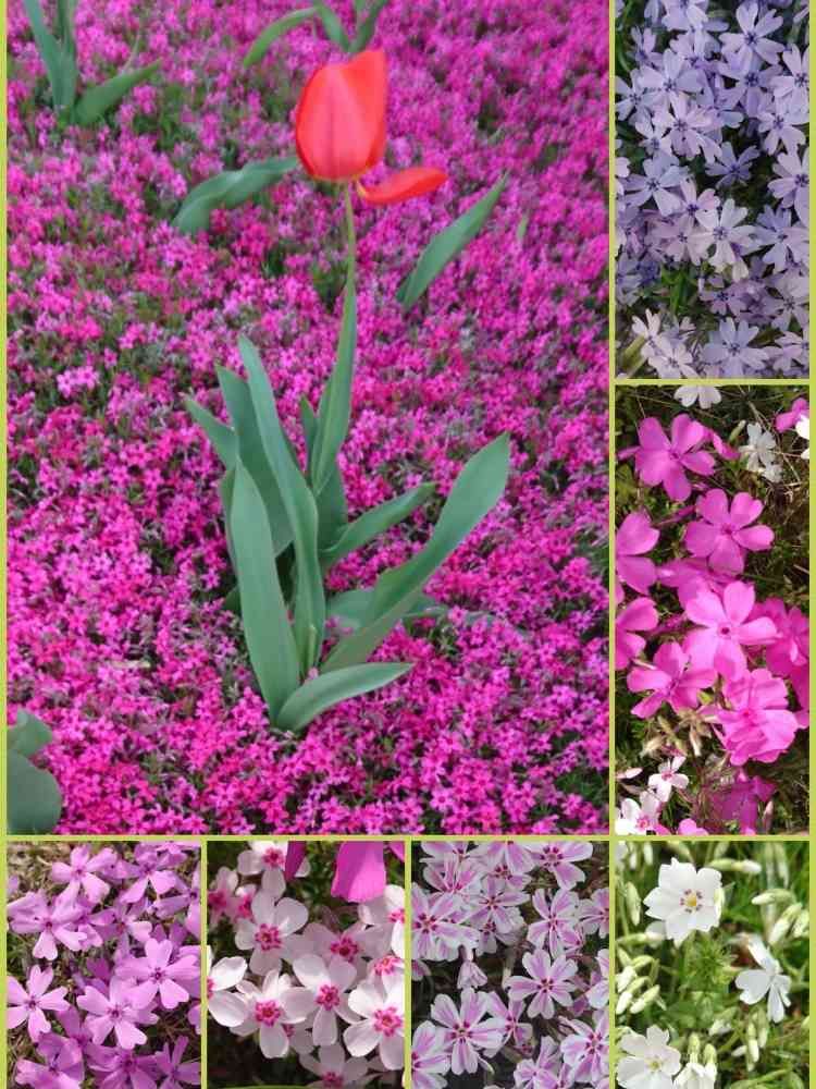 職場近くのマンションの外回りに、一面のシバザクラの中にチューリップ🌷が点々と咲いてました✨✴️✨
