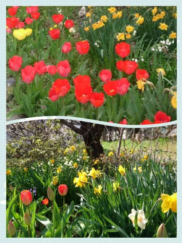 広い庭,スイセン,チューリップの投稿画像