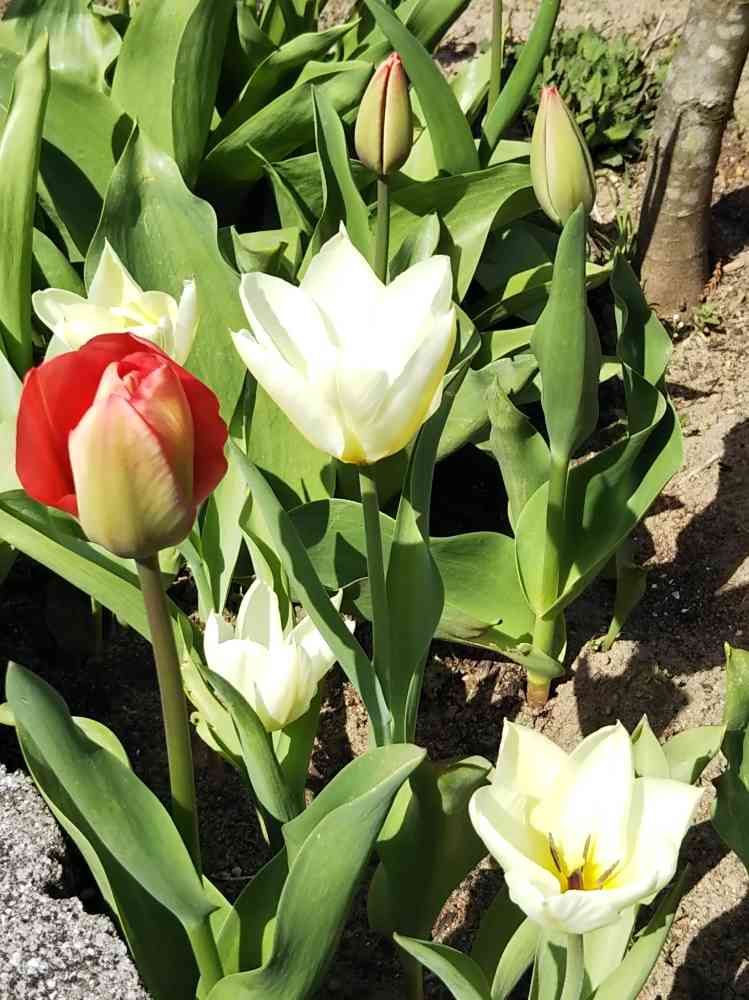 山間地のチューリップ🌷やっと春❗️土が暖かくなりました。昨年より10日遅れです。堀お越しせず、植えっぱなしの状態、昨年は茎が短く妻から肥料不足と指摘受け、液肥やったらイヤハヤ指摘通り、二倍になりました。