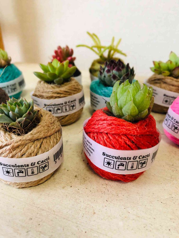 小さな毛糸玉🧶に、多肉を植えてみました😊小さいだけで、なんと可愛い😍💕紙帯は飾りですが、一応、ロー引きしてあるから、バケツにドボン💦してOK👍