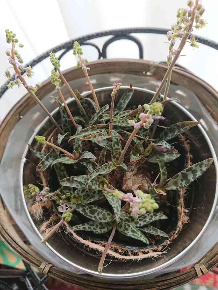 ヒョウ柄っぽくて、植物にしては、珍しいですよね。好き嫌いが分かれるけれど、よく見るとかわいいです。