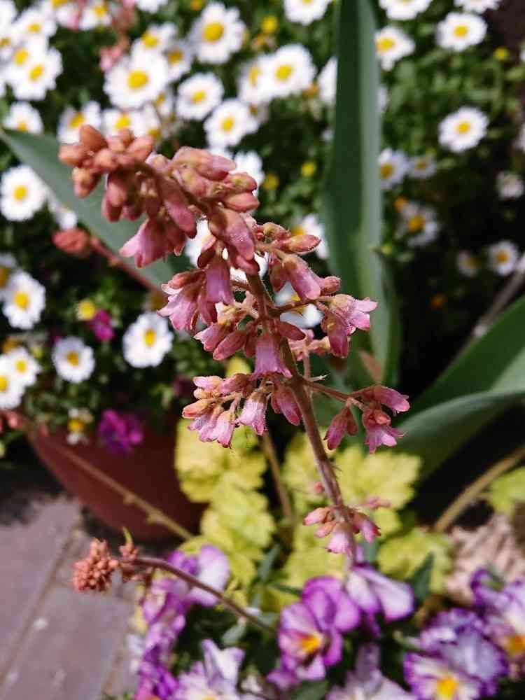 ソーラーライトはひとつ壊れ😞オダマキ、ボリジは折れてもげてて😱スパキシラスの鉢はあらぬ方向に転がり😱このヒューケラも花が一本取れ😞 あちこちに転がりぶつかりながらの帰宅かぁ〰️💦