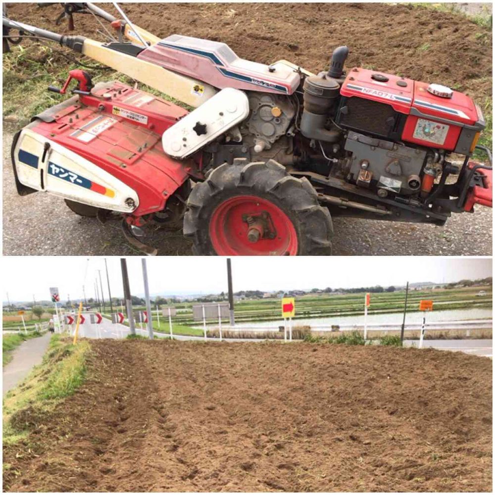 草刈りしたのちに、パーム灰を撒いて耕運機で耕転して草むらもスッキリ✨