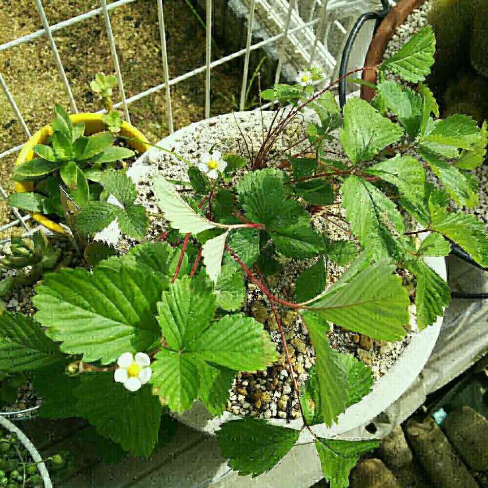夏に枯れかけた通年草のワイルドストロベリー🍓