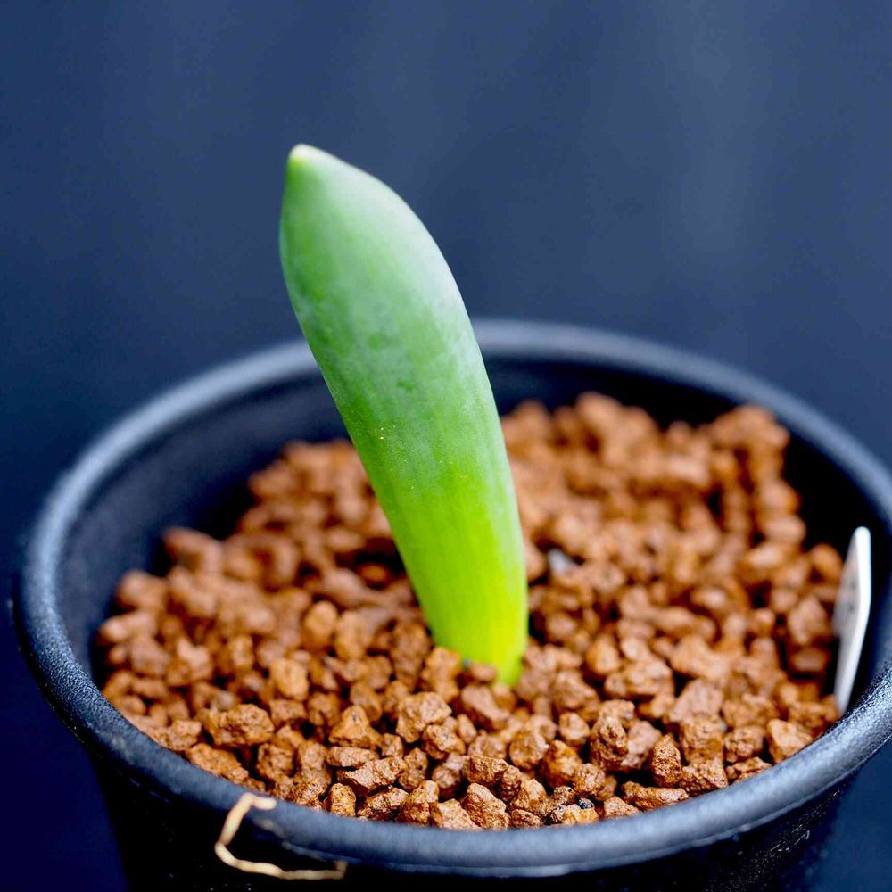 棍棒のような多肉質の一枚葉を出す奇妙な葉姿の種。