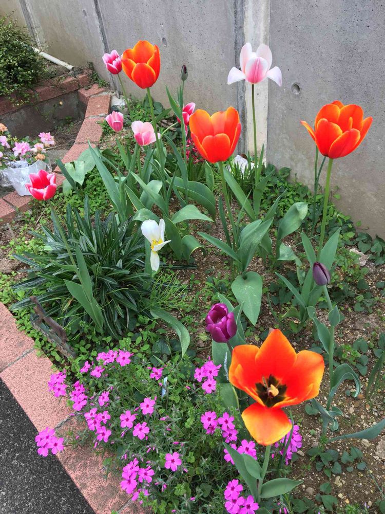 玄関の小さな庭にチューリップ🌷が咲き出しました♪( ´▽`)