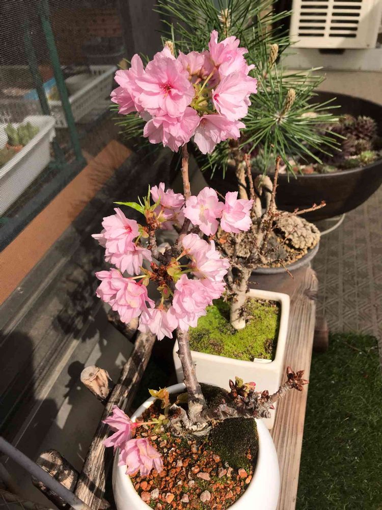 桜の盆栽が今頃綺麗に咲いてます🌸