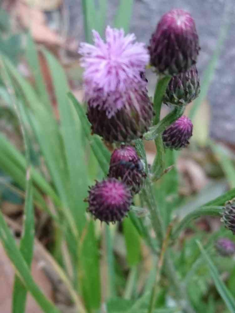 但し、これは☝️、キツネアザミ😅葉っぱにも、花にも、トゲがありません。遠めに見るとアザミですが、全く別のものです👀キク科キツネアザミ属。