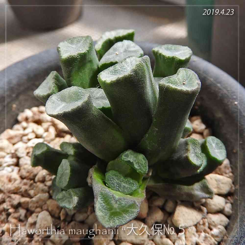 ハオルチア、万象(大久保№5)。焦げさせたりやつれさせたりなかなかうまく育てられないんだけど、ただいま子吹き三か所。……万象ってこんなに仔吹き酢るンだっけ?