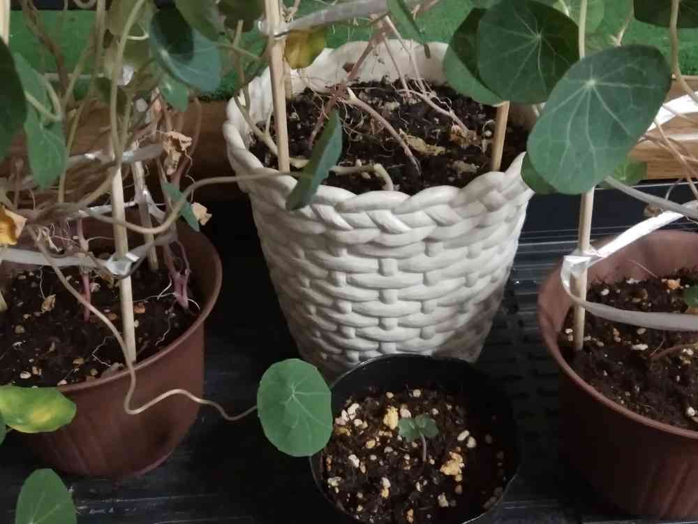 華やかさの少ないうちの庭で、日当たり時間が少なくても元気に育つナスタチウムに新しく追加した、金蓮花ハワイアンミックス