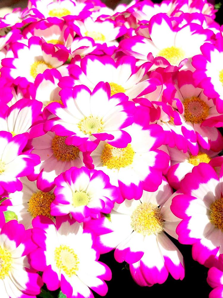 サイネリアのくっきりした配色に目が覚めそうです(笑)