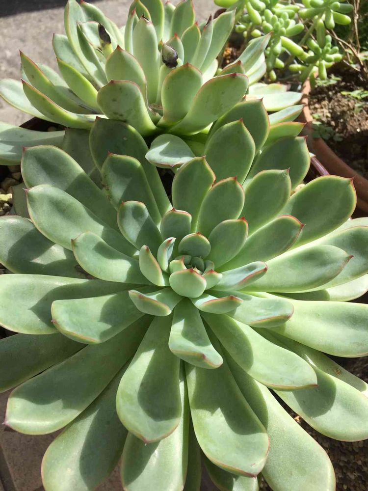 家の塗装で。。足場をガッツリ、ネットを掛けられ。。。2階ベランダから玄関前からお勝手横の多肉ちゃん達のスペースが。。色々大変で😅💦本当にどこにも置き場がない位😱💦もう終わりましたが✌️💕この子は玄関前にいつも飾ってました。夏は葉焼け、それからの日照不足で。。元の場所に戻ってから😊✨