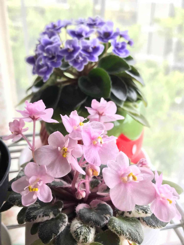 セントポーリア 花も葉も楽しめていいですよね🎶斑入り葉が素敵です💖