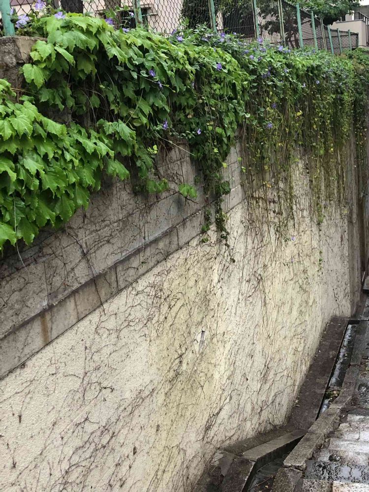 石の柵と階段と長くぶら下がったおびただしいツルニチニチソウの壁の取り合わせが好きで時々通ってしまいます