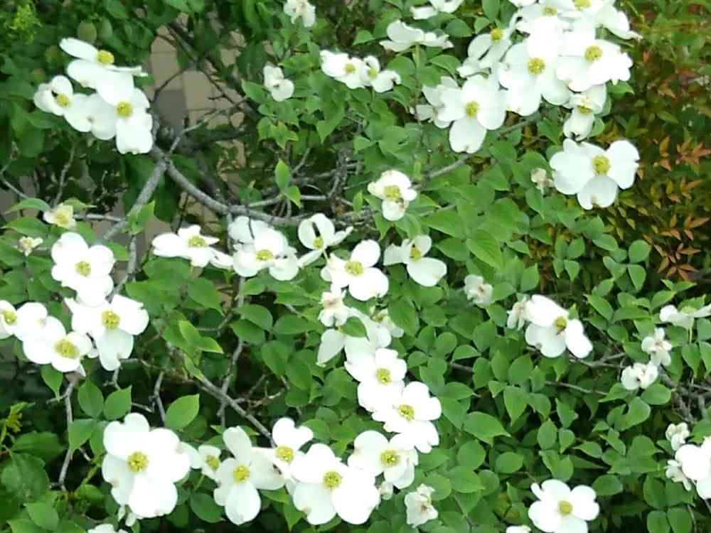 街のあちこちでハナミズキが握った手を開くように咲き始めました。