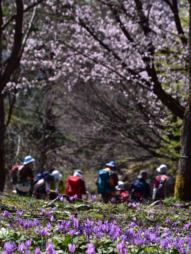 毎年来て、毎年感動するオオヤマザクラとカタクリのコラボ。