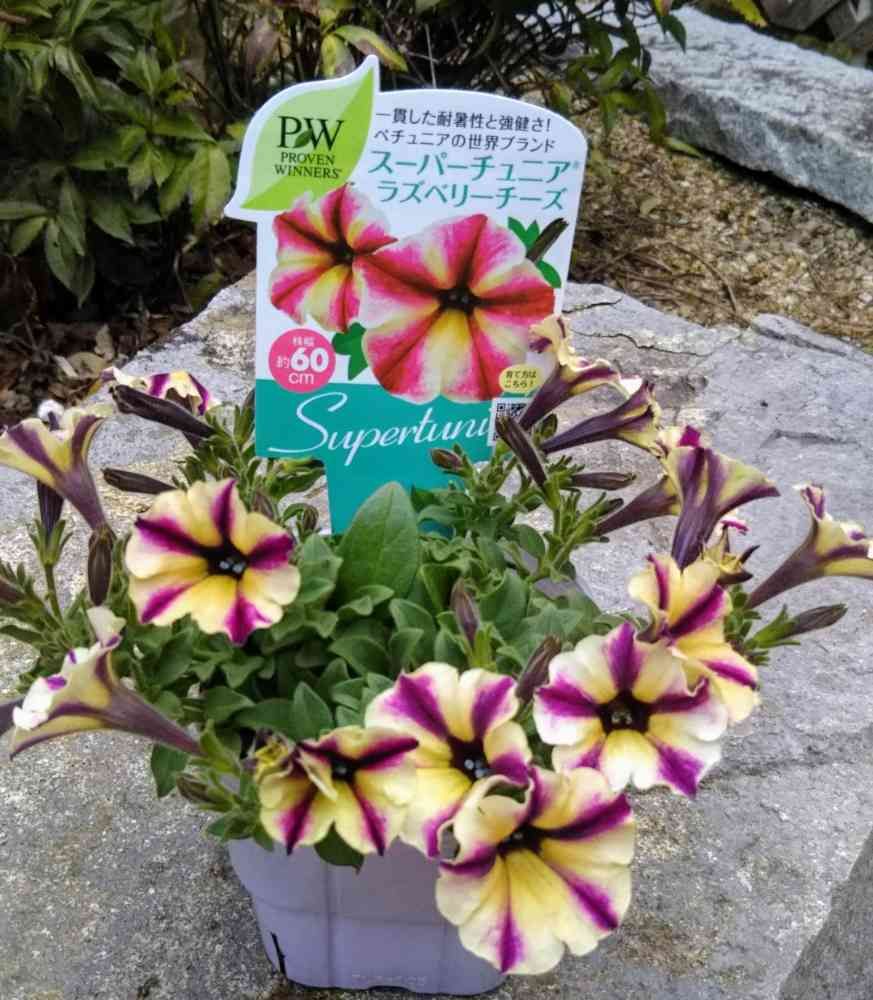 わぁ!可愛い!スーパーチュニアのラズベリーチーズは、こちらでは見かけないからいーなぁ。