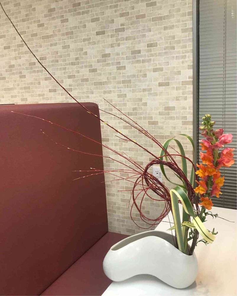 曲がる枝もの・葉ものをくるくる巻いてみました。残業後でクタクタでしたが、なんとか完成〜😊